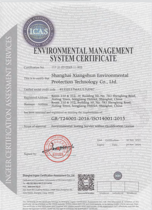 公司已于2021年11月30日取得ISO14001:2015環(huán)境管理體系證書